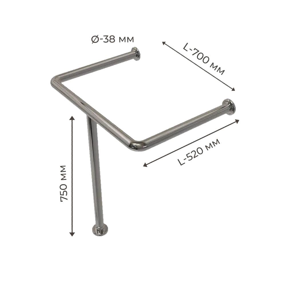 Поручень для людей з інвалідністю (МГН) для раковини підлогово-настінний INVO з нержавіючої сталі, розмір 700х750 мм, D труби - 38 мм